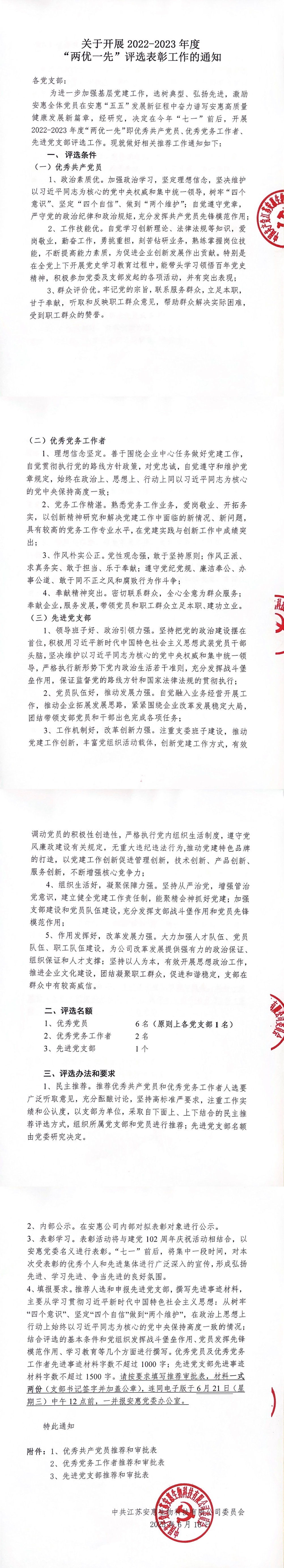 關于開展2022-2023年度“兩優一先”評選表彰工作的通知