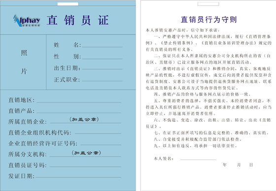 您現(xiàn)在的位置 >> 直銷信息披露 >>直銷員證樣本